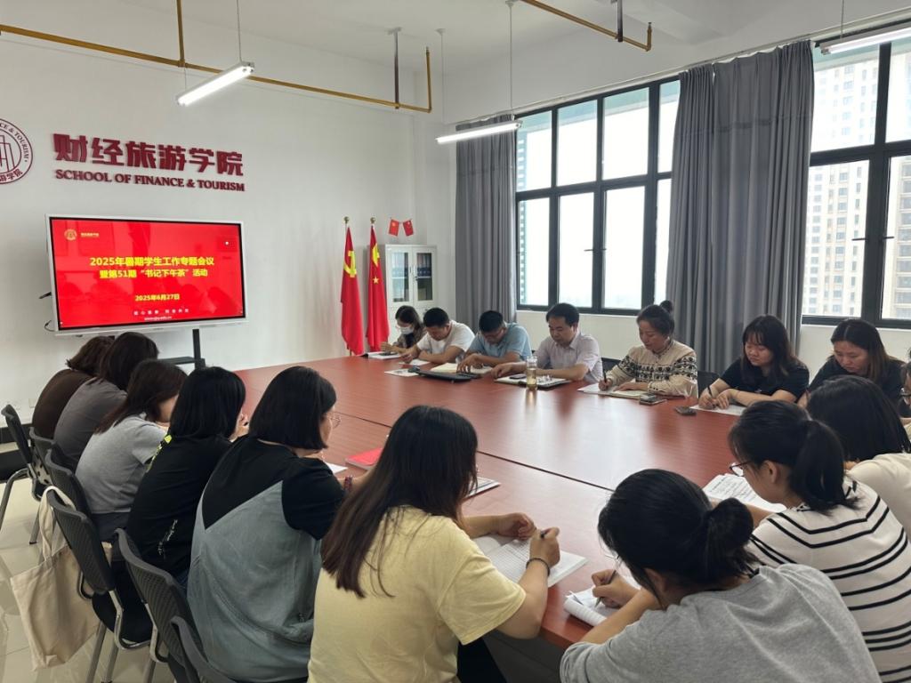 6月27日下午,财经旅游学院在启航楼704会议室举办了一场别开生面的活动——2025年暑期学生工作专题会议暨第51期“书记下午茶”。此次活动旨在通过轻松愉悦的茶叙形式,凝聚各方力量,共同探讨暑期学生安全稳定工作,为学生的暑期生活保驾护航。