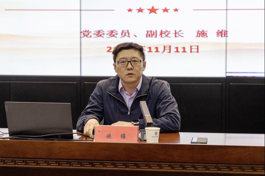 2025年11月11日下午,武汉新城校区上善楼806会议室座无虚席、气氛热烈,财经旅游学院在此举办了一场主题鲜明、内容丰富的《形势与政策》专题讲座。党委委员、副校长施维为学院师生作题为“深入学习贯彻党的二十届四中全会精神 扎实推进职业教育人才培养高质量发展”的专题辅导报告,学院2025年秋季入党积极分子及各班级团支部书记共90人现场聆听学习。