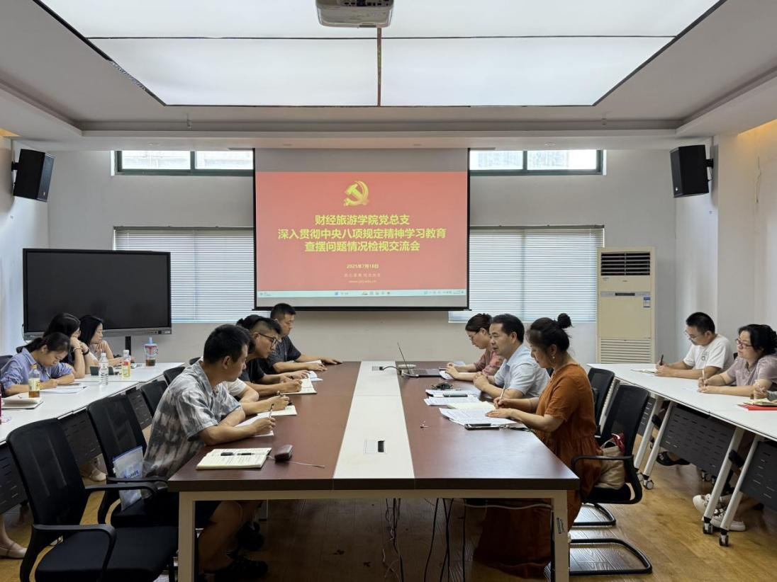 7月18日下午,财经旅游学院党总支在光谷校区明德楼202会议室召开专题会议,对贯彻落实中央八项规定精神学习教育阶段查摆出的问题进行再检视、再剖析、再部署。党总支委员、各支部委员及全体行政管理干部参加会议。党总支副书记赵秋丹主持会议。