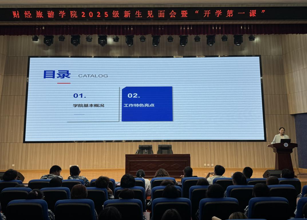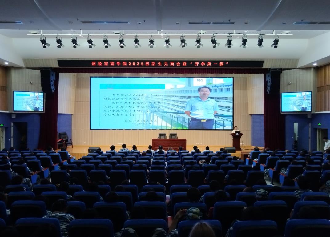 2025年9月28日,财经旅游学院在武汉新城校区学术报告厅隆重举行2025级新生见面会暨“开学第一课”,以庄重而温馨的仪式,热烈欢迎524名来自五湖四海的2025级新同学。学院领导、各科室负责人、教师代表、新生辅导员与全体新生齐聚一堂,共同开启大学旅程的崭新篇章。